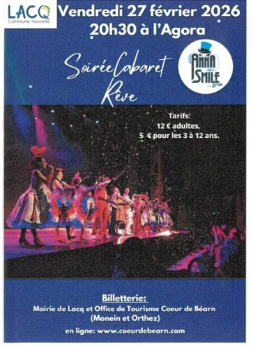 La Commune de Lacq vous propose d’assister à la « Soirée Cabaret Rêve Anna Smile », le vendredi 27 février 2026 à 20h30 à la salle de l’Agora.